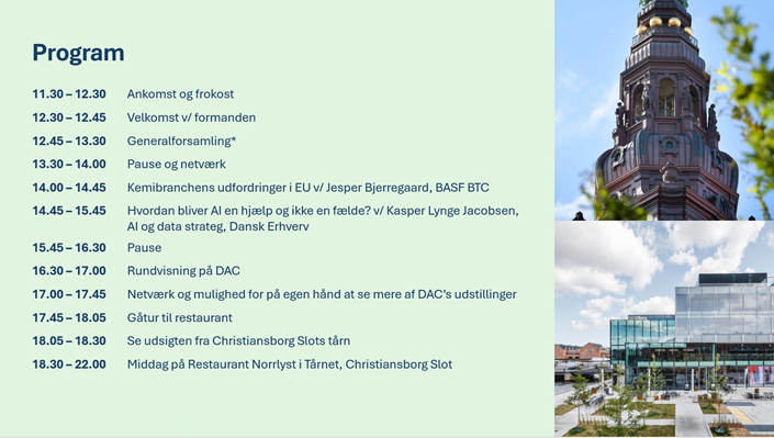 Vi har fornøjelsen af at invitere jer til generalforsamling og temadag torsdag den 12. marts 2026 på Dansk Arkitektur Center i København. Det bliver en inspirerende og indholdsrig dag med generalforsamling, spændende oplæg om vores branche samt AI’s muligheder og faldgruber. Dagen byder også på lækker forplejning og rig mulighed for kollegialt samvær og gode samtaler.
